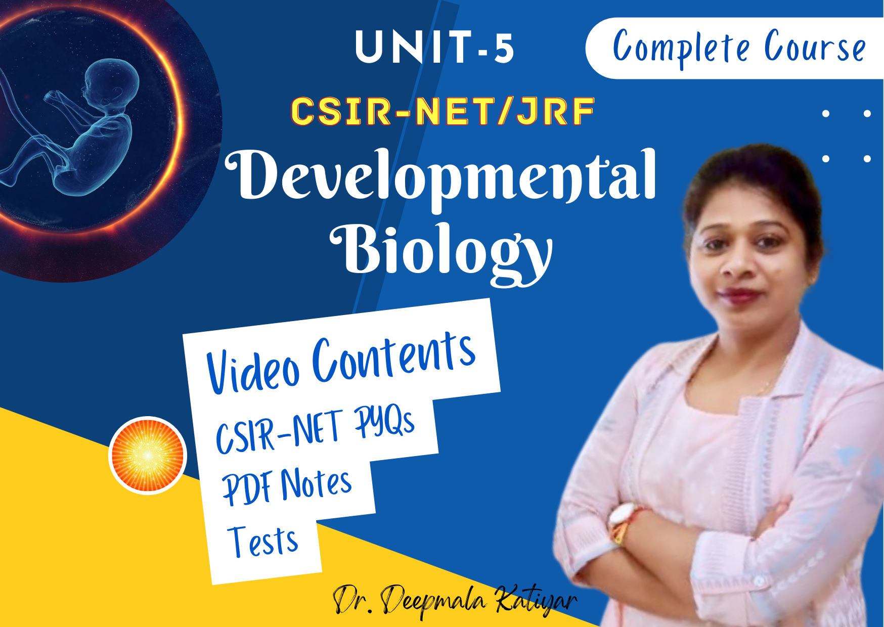 This course is design by expert faculty for CSIR-NET/JRF Life Sciences UNIT 5 Developmental Biology. It included Videos content, PDF notes, CSIR-NET PYQs for every class, online CBT. You will get all content in this course given below according to CSIR-NET/JRF. Syllabus A) Basic concepts of development : Potency, commitment, specification, induction, competence, determination and differentiation; morphogenetic gradients; cell fate and cell lineages; stem cells; genomic equivalence and the cytoplasmic determinants; imprinting; mutants and transgenics in analysis of development B) Gametogenesis, fertilization and early development: Production of gametes, cell surface molecules in sperm-egg recognition in animals; embryo sac development and double fertilization in plants; zygote formation, cleavage, blastula formation, embryonic fields, gastrulation and formation of germ layers in animals; embryogenesis, establishment of symmetry in plants; seed formation and germination. C) Morphogenesis and organogenesis in animals : Cell aggregation and differentiation in Dictyostelium; axes and pattern formation in Drosophila, amphibia and chick; organogenesis –vulva formation in Caenorhabditis elegans, eye lens induction, limb development and regeneration in vertebrates; differentiation of neurons, post embryonic development- larval formation, metamorphosis; environmental regulation of normal development. D) Morphogenesis and organogenesis in plants: transition to flowering, floral meristems and floral development in Arabidopsis and Antirrhinum E) Programmed cell death and senescence Videos Description: Developmental Biology-All Videos Content given in our App Vitaegen Biotech Introduction to Development Biology: Introduction, Syllabus, Books, question types Gametogenesis Part-1: Introduction, Monoeciuos or Hermaphrodite, Dioecious, Gonochorism Spermatogenesis, Spermatids, Spermiogenesis or Spermatoliosis Gametogenesis Part-2: Oogenesis, Formation of Secondary Oocyte Discontinuous Process, Formation of Secondary Oocyte Discontinuous Process, Hormonal control of female reproductive system Fertilization Part-1: Mammalian Fertilization, Mammalian Egg, Zona Pellucida, Ovastatin Fertilization Part-2: Capacitation, Activation of Sperm, CSIR-NET PYQs. Fertilization Part-3: Fertilization in Sea Urchin, Sea Urchin Egg, Resact / Speract Protein, Acrosome Reaction (Exposure of Bindin). Fertilization Part-4: Blocking of Polyspermy, Fast Block, Slow Block, Cortical Granule Reaction/ Permanent, Cortical Granules Exocytosis, Case Studies. Fertilization Part-5: Fertilization CSIR-NET PYQs 2008 to 2020 Development Concepts Part-1: Cell fate, Development in vertebrates, Cell Potency. Development Concepts Part-2 : Cell Potential, Differentiation Commitment, Specification, Autonomous Specification or Mosaic Development, Roux 1888 Defect Experiment. Development Concepts Part-3: Conditional Specification Transplantation Experiment, Cytoplasmic Determinants, Weisman 1883 Proposed Germ Plasm Theory, Driesch (1892) Isolation experiments, Intricate Recombination Experiment Drisch 1893, Syncytial Specification. Development Concepts Part-4: Morphogens, Drosophila Axis Formation – Bicoid, Morphogenetic Gradient, CSIR-NET PYQs. Development Concepts Part-5: Vitellogenesis (Ovum Maturation), Egg type based on amount and distribution of yolk, On the basis of yolk distribution, On the basis of shell, Principle of cleavage, Plane of Cleavage, Pattern of Cleavage, Deuterostomes, Proteostomes. Development Concepts Part-6: Different Type of Blastula, Morphogenetic Movements, Epiboly, Emboly, Gastrula. Development Concepts Part-7: Cell-Cell Communication, Induction, Epithelial-mesenchymal interactions, Reciprocal Transplantation and induction, Permissive Interaction, Instructive interaction, Sequential inductive events, Cadherins. Drosophila Development Part-1: Introduction, Axis Formation, Metamorphosis, Superficial Cleavage or Syncytial Cleavage. Drosophila Development Part-2: Drosophila Axis Specification, Three Goup of Genes, Maternal Effect Gene (Egg Polarity Gene), Torso Signaling, Bicoid, nanos mutation cases, CSIR-NET PYQs. Drosophila Development Part-3: Dorsal Ventral Axis Formation, Signaling Molecules, Mutation cases, CSIR-NET PYQs. Drosophila Development Part-4: Dorsal Ventral Axis Formation, Germline Chimeras, CSIR-NET PYQs. Drosophila Development Part-5: Drosophila Axis Specification zygotic gene or segmentation gene, Gap Gene, Expression of Gap Gene, Pair Rule Gene, Segment and Parasegment, Stripes & substripes. Drosophila Development Part-6: Zygotic Gene or Segmentation Gene, Segment Polarity Genes (SPG): Wnt/ Frizzled Pathway Drosophila Development Part-7: Homeotic Selector/ Identity Gene, Antennapedia gene mutation, Bi-thorax complex Delete, French Flag Analogy For Operation Of Gradient Positional Information, CSIR-NET PYQs. Caenorhabditis elegans, sea urchin, mammalian, flower development, seed development Part-1 & 2..etc..... All Deta